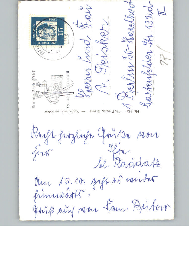 31122303 Bremen postalisch nicht gelaufen KatCode: 11110004011000