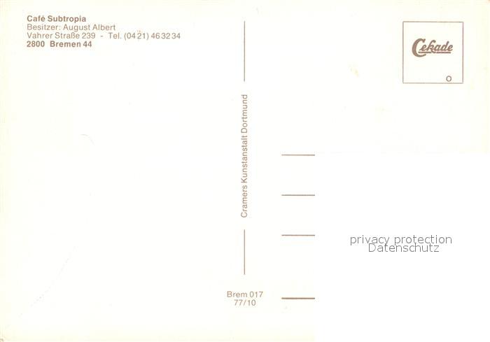 73247066 Bremen Cafe Subtropia postalisch nicht gelaufen Erhaltung siehe scans [KathaD81] KatCode: 11110004011000