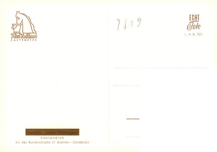 73885856 BREMEN CITY Altes Rasthaus Kastendiek Gasthof Klein Thueringen Gastraum postalisch nicht gelaufen Erhaltung siehe scans [WerneD78] Wern Katcode 11110004011000