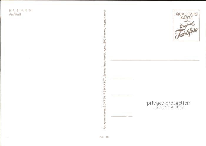 72563442 BREMEN CITY am Wall postalisch nicht gelaufen Erhaltung siehe scans [LiesaD40] KatCode: 11110004011000