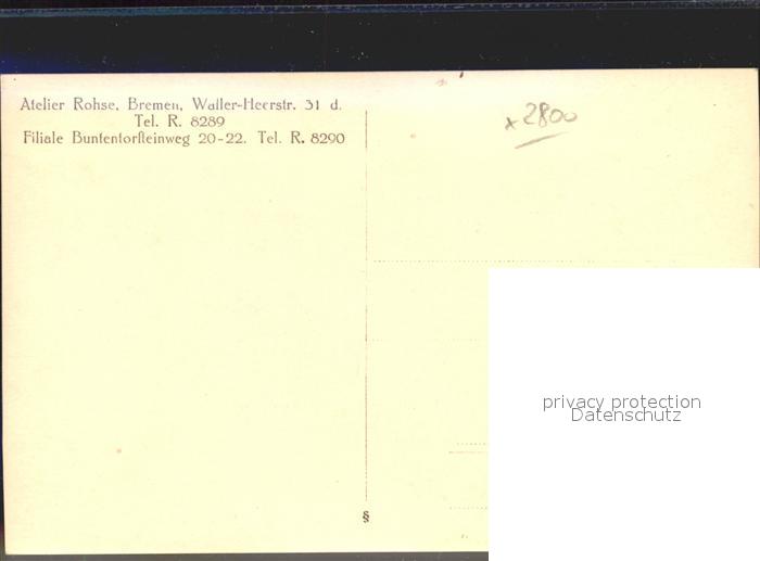 42096085 BREMEN CITY Atelier Rohse postalisch nicht gelaufen Erhaltung siehe scans Alte Ansichtskarte Postkarte Nata Katcode 11110004011000