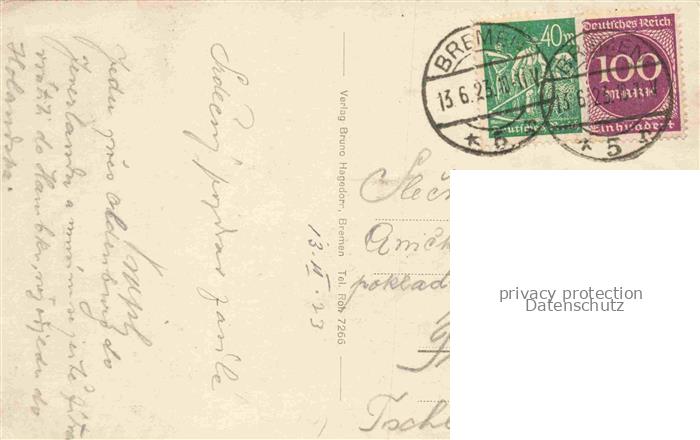 34146387 alte Postkarte BREMEN CITY Blick vom Werder postalisch gelaufen Erhaltung siehe scans [WerneD78] KatCode: 11110004011000