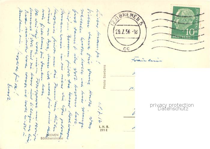 73768233 BREMEN CITY Boettcherstrasse postalisch gelaufen Erhaltung siehe scans [WerneD78] alte Postkarte Wern Katcode 11110004011000