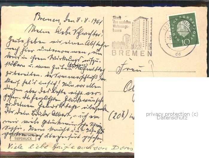 41477487 BREMEN CITY Buergermeister Smidt Bruecke postalisch gelaufen Erhaltung siehe scans Alte Ansichtskarte Postkarte alte Postkarte hz_W Katcode 11110004011000