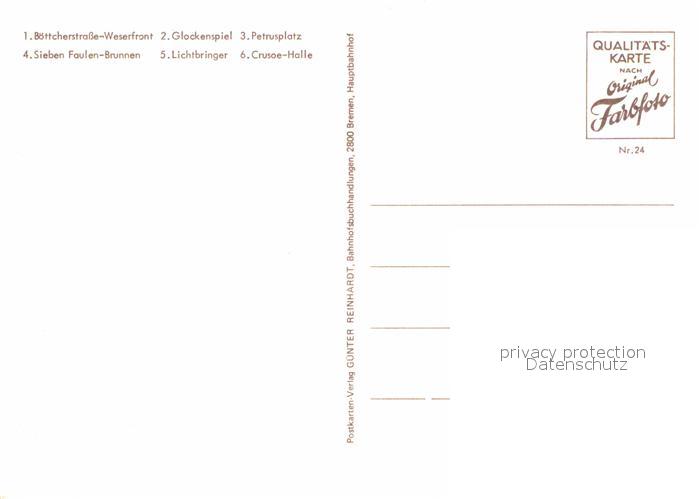 72618093 BREMEN CITY Buettcherstrasse Glockenspiel Petrusplatz Sieben Faulen-Brunnen postalisch nicht gelaufen Erhaltung siehe scans [NatalD47] KatCode: 11110004011000