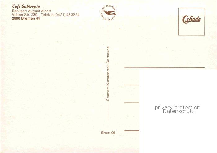 72688672 BREMEN CITY Cafe Subropia postalisch nicht gelaufen Erhaltung siehe scans [NatalD47] KatCode: 11110004011000
