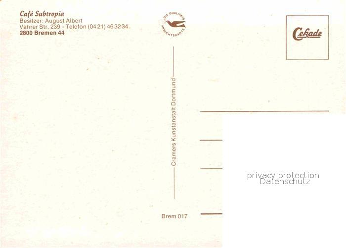 72687434 BREMEN CITY Cafe Subtropia postalisch nicht gelaufen Erhaltung siehe scans [FriedD77] KatCode: 11110004011000