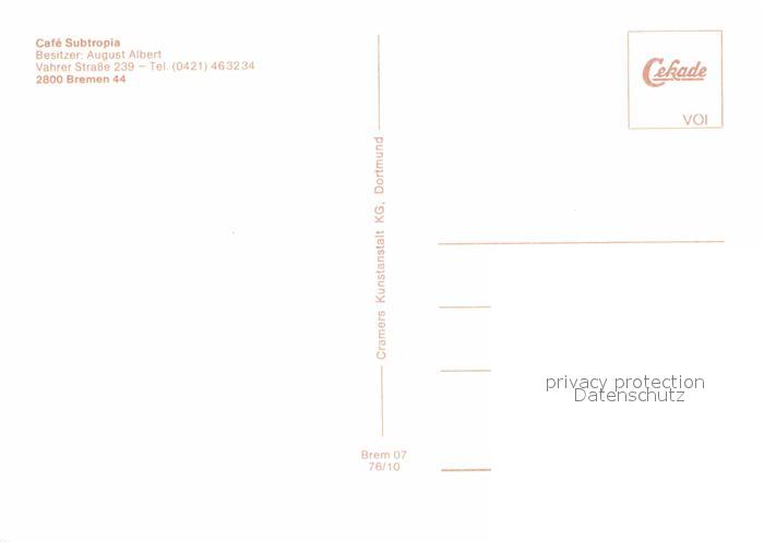 72687400 BREMEN CITY Cafe Subtropia postalisch nicht gelaufen Erhaltung siehe scans [FriedD77] KatCode: 11110004011000