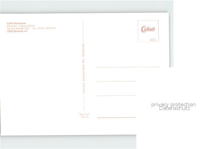 72360781 BREMEN CITY Cafe Subtropia postalisch nicht gelaufen Erhaltung siehe scans KatCode: 11110004011000