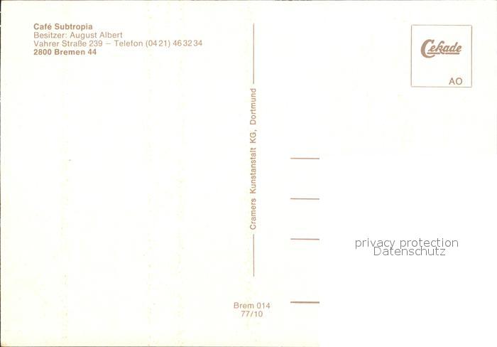72347519 BREMEN CITY Cafe Subtropia postalisch nicht gelaufen Erhaltung siehe scans KatCode: 11110004011000