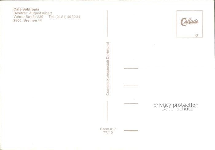 72261166 BREMEN CITY Cafe Subtropia postalisch nicht gelaufen Erhaltung siehe scans KatCode: 11110004011000