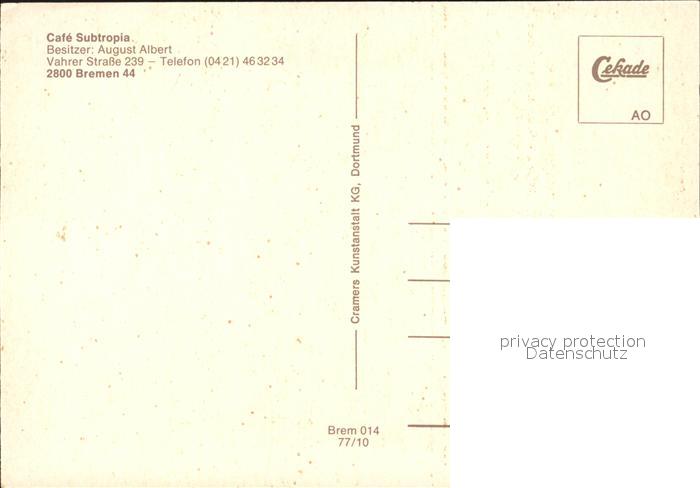 72261161 BREMEN CITY Cafe Subtropia postalisch nicht gelaufen Erhaltung siehe scans KatCode: 11110004011000