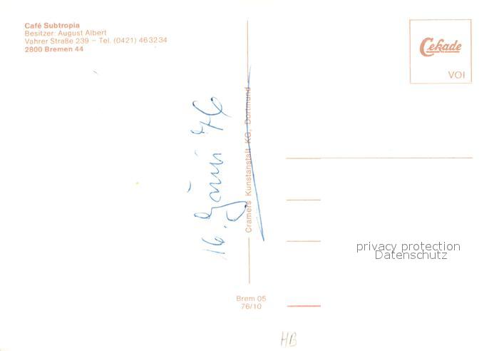 73731694 BREMEN CITY Cafe Subtropia postalisch nicht gelaufen Erhaltung siehe scans [LiesaD40] Lies Katcode 11110004011000