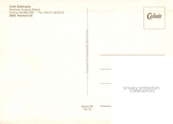 73685747 BREMEN CITY Cafe Subtropia postalisch nicht gelaufen Erhaltung siehe scans [WerneD78] Wern Katcode 11110004011000