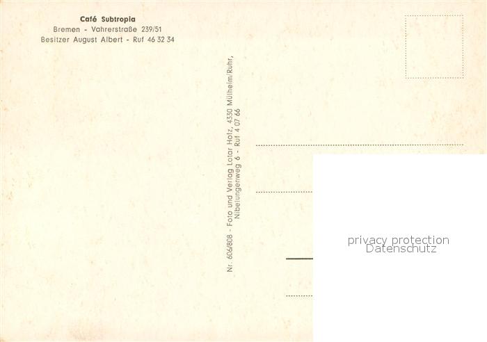 73685070 BREMEN CITY Cafe Subtropia postalisch nicht gelaufen Erhaltung siehe scans [FriedD77] Frie Katcode 11110004011000