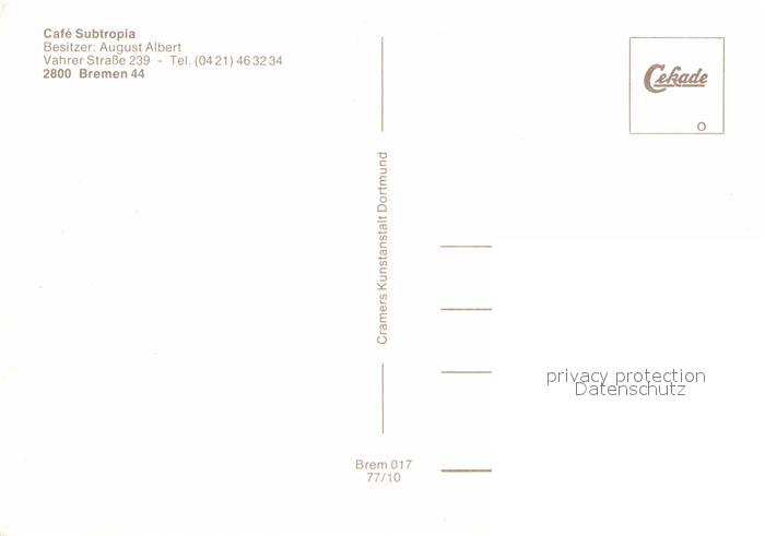 72886678 BREMEN CITY Cafe Subtropia postalisch nicht gelaufen Erhaltung siehe scans [WerneD78] KatCode: 11110004011000