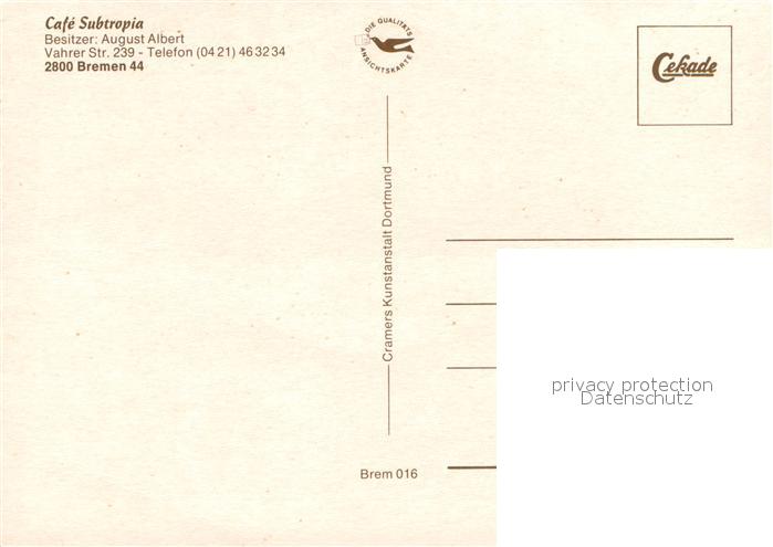 73685758 BREMEN CITY Cafe Subtropia Gaertnerei Albert postalisch nicht gelaufen Erhaltung siehe scans [WerneD78] Wern Katcode 11110004011000