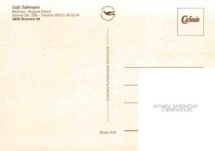 72682716 BREMEN CITY Cafe Subtropia Gaertnerei Albert postalisch nicht gelaufen Erhaltung siehe scans [LiesaD40] KatCode: 11110004011000