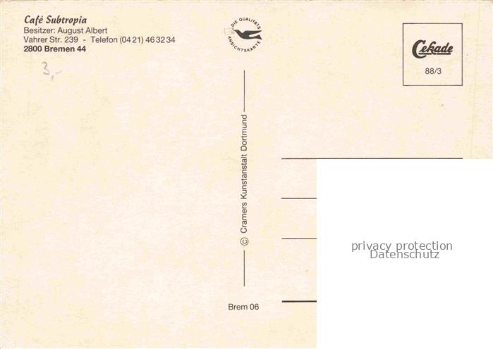 74042640 BREMEN CITY Café Subtropia Gastraum postalisch nicht gelaufen Erhaltung siehe scans [FriedD77] KatCode: 11110004011000