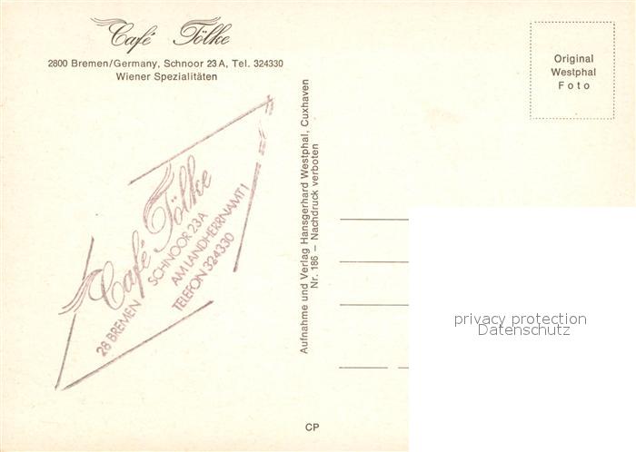 73731147 BREMEN CITY Cafe Toelke Aussenansicht postalisch nicht gelaufen Erhaltung siehe scans [LiesaD40] Lies Katcode 11110004011000