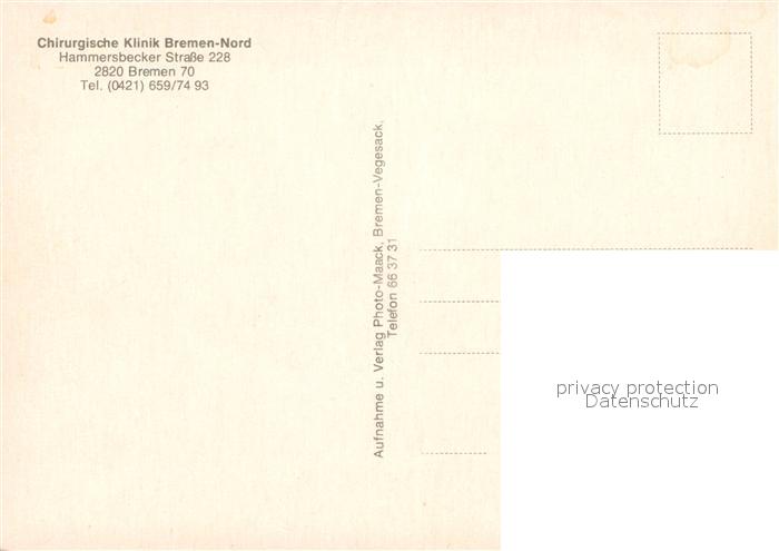 72950851 BREMEN CITY Chirurgische Klinik Bremen Nord postalisch nicht gelaufen Erhaltung siehe scans [WerneD78] KatCode: 11110004011000