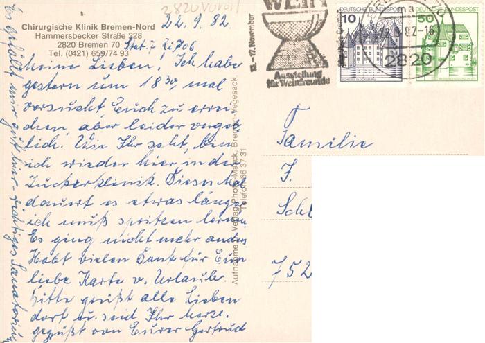 73933385 BREMEN CITY Chirurgische Klinik Bremen-Nord postalisch gelaufen Erhaltung siehe scans [FriedD77] alte Postkarte Frie Katcode 11110004011000