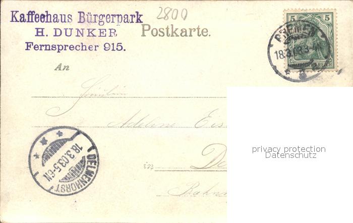 42097691 alte Postkarte BREMEN CITY Emmasee Buergerpark postalisch gelaufen Erhaltung siehe scans KatCode: 11110004011000