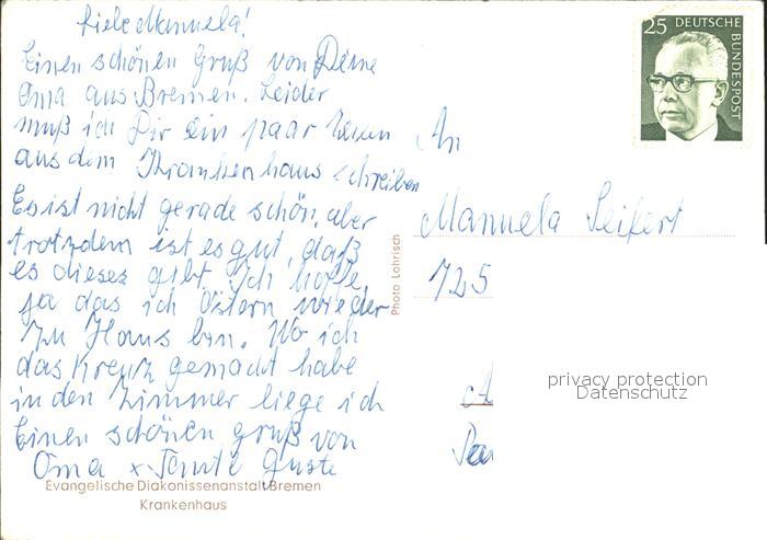 72022075 BREMEN CITY Ev Diakonissenanstalt Krankenhaus postalisch nicht gelaufen Erhaltung siehe scans KatCode: 11110004011000