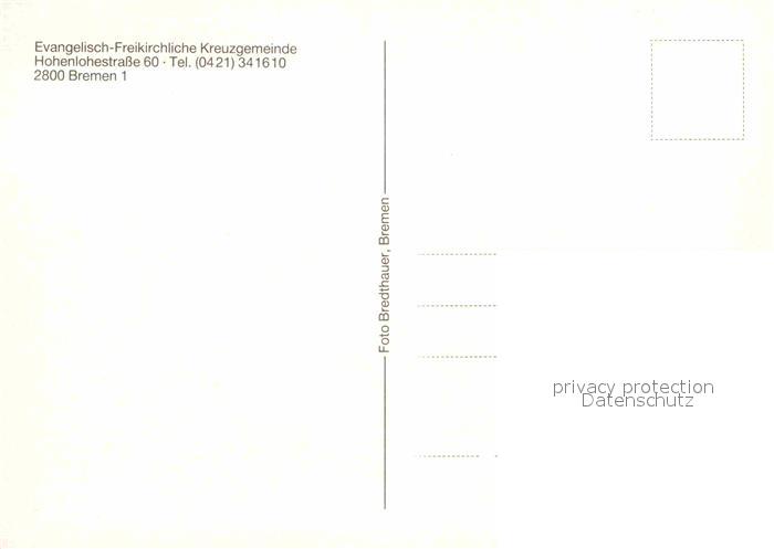72687417 BREMEN CITY Ev Freikirchliche Kreuzgemeinde Kirche postalisch nicht gelaufen Erhaltung siehe scans [FriedD77] KatCode: 11110004011000