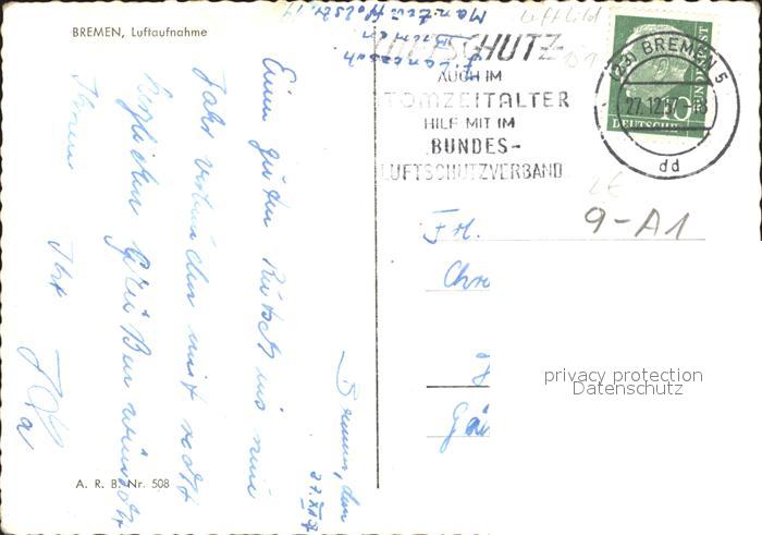72327771 alte Postkarte BREMEN CITY Fliegeraufnahme postalisch gelaufen Erhaltung siehe scans KatCode: 11110004011000