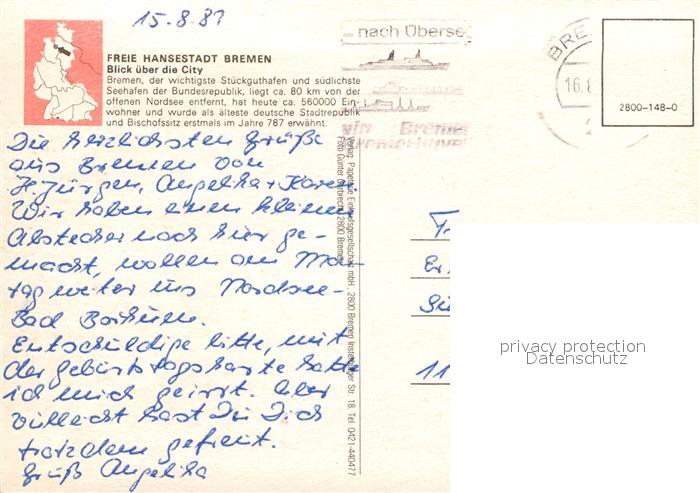 73128815 alte Postkarte BREMEN CITY Fliegeraufnahme postalisch gelaufen Erhaltung siehe scans [KathaD81] KatCode: 11110004011000