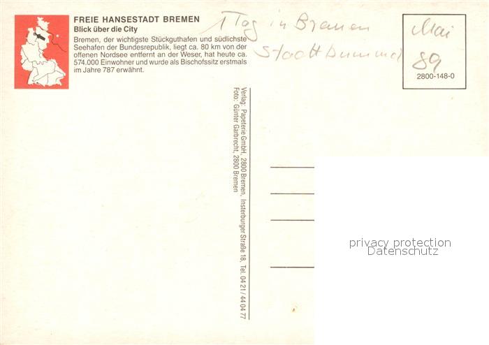 73073077 BREMEN CITY Fliegeraufnahme postalisch nicht gelaufen Erhaltung siehe scans [KathaD81] KatCode: 11110004011000