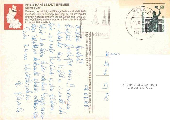 72916553 alte Postkarte BREMEN CITY Fliegeraufnahme postalisch gelaufen Erhaltung siehe scans [NatalD47] KatCode: 11110004011000