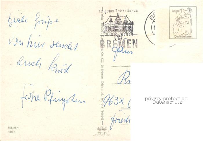 73118026 alte Postkarte BREMEN CITY Fliegeraufnahme Hafen postalisch gelaufen Erhaltung siehe scans [KathaD81] KatCode: 11110004011000