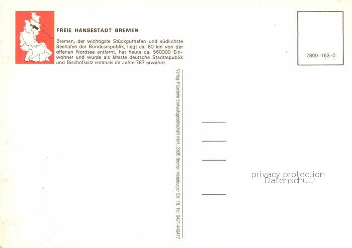 72848801 BREMEN CITY Fliegeraufnahme Hansestadt Marktplatz Kirche Soegegruppe Skulpturen Stadtmusikanten Muehle Weser Hafen postalisch nicht gelaufen Erhaltung siehe scans [FriedD77] KatCode: 11110004011000