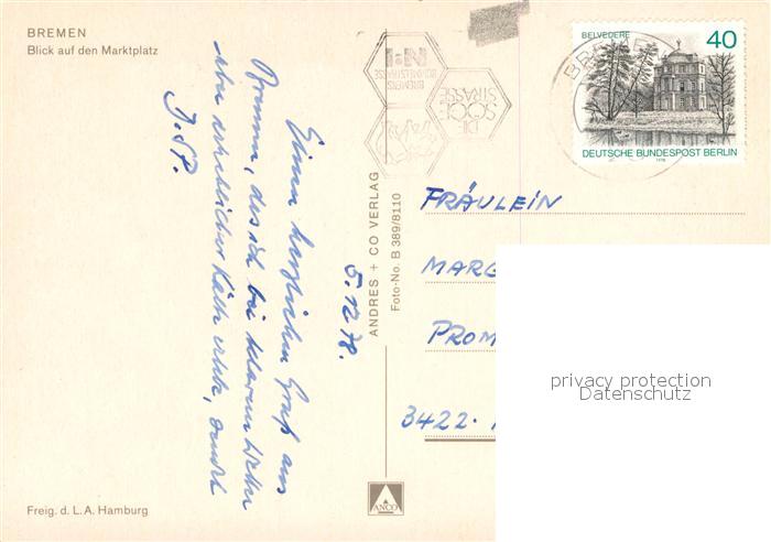 72940774 alte Postkarte BREMEN CITY Fliegeraufnahme Marktplatz Kirche postalisch gelaufen Erhaltung siehe scans [KathaD81] KatCode: 11110004011000