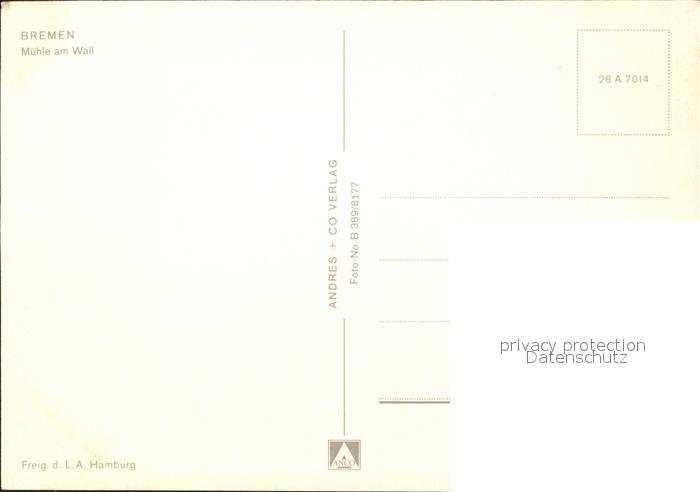 72323001 BREMEN CITY Fliegeraufnahme Muehle am Wall postalisch nicht gelaufen Erhaltung siehe scans KatCode: 11110004011000