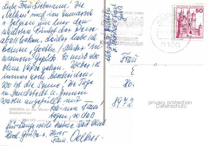72709278 alte Postkarte BREMEN CITY Fliegeraufnahme Weserpartie mit Stadtzentrum postalisch gelaufen Erhaltung siehe scans [LiesaD40] KatCode: 11110004011000
