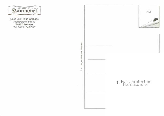 72687432 BREMEN CITY Gasthaus Dammsiel postalisch nicht gelaufen Erhaltung siehe scans [FriedD77] KatCode: 11110004011000