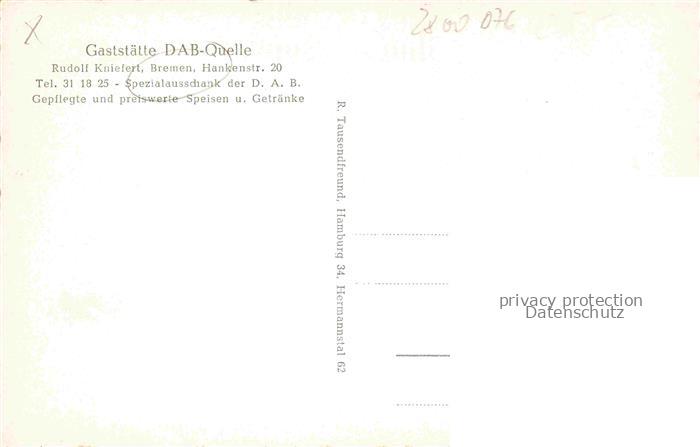74102514 BREMEN CITY Gaststaette DAB-Quelle Gaststube Theke postalisch nicht gelaufen Erhaltung siehe scans [FriedD77] KatCode: 11110004011000