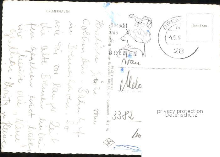 71939451 alte Postkarte BREMEN CITY Hafen Bruecke uebersee Dampfer postalisch gelaufen Erhaltung siehe scans KatCode: 11110004011000