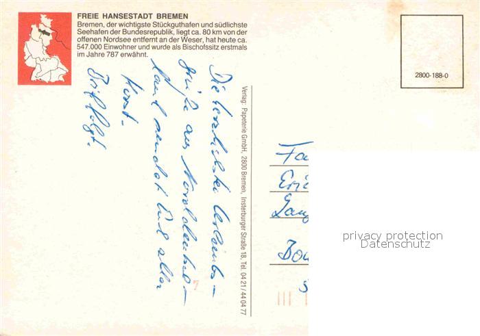 72869422 BREMEN CITY Hafen Roland Marktplatz postalisch nicht gelaufen Erhaltung siehe scans [NatalD47] KatCode: 11110004011000