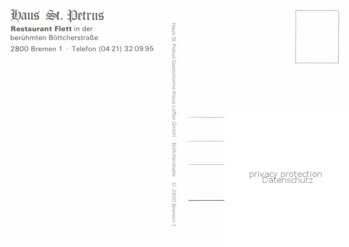 72754011 BREMEN CITY Haus St Petrus Restaurant Flett in der Boettcherstrasse postalisch nicht gelaufen Erhaltung siehe scans [FriedD77] KatCode: 11110004011000