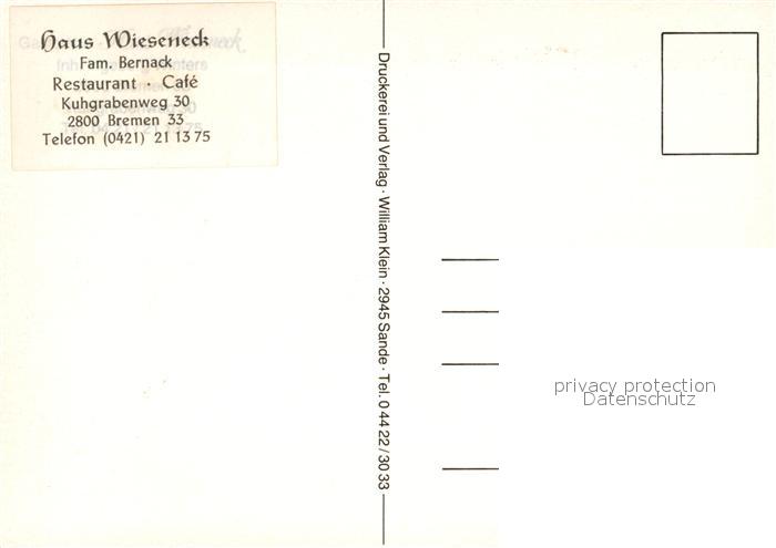 73087808 BREMEN CITY Haus Wieseneck Restaurant Cafe postalisch nicht gelaufen Erhaltung siehe scans [KathaD81] KatCode: 11110004011000