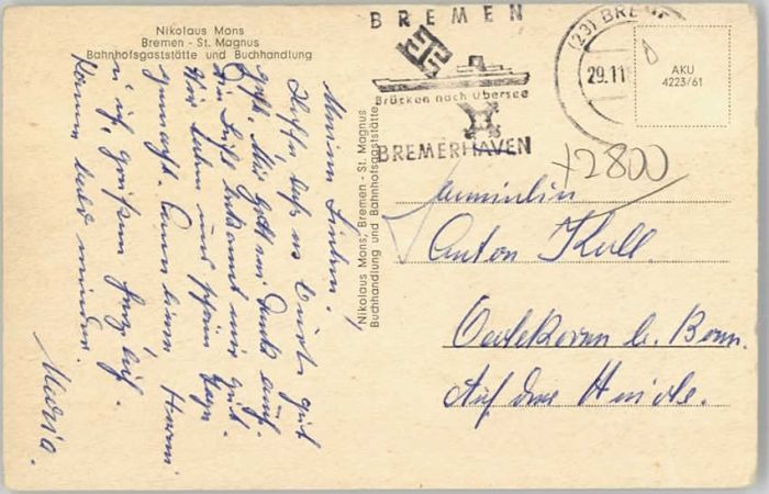 40032441 BREMEN CITY Juenglingshalle Ilsabeenstift postalisch gelaufen Alte Ansichtskarte Postkarte alte Postkarte Katcode 11110004011000