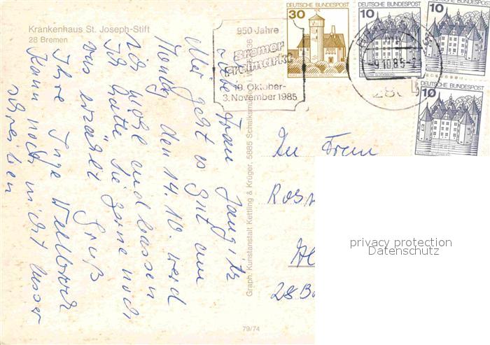 72723899 alte Postkarte BREMEN CITY Krankenhaus St. Joseph-Stift postalisch gelaufen Erhaltung siehe scans [LiesaD40] KatCode: 11110004011000