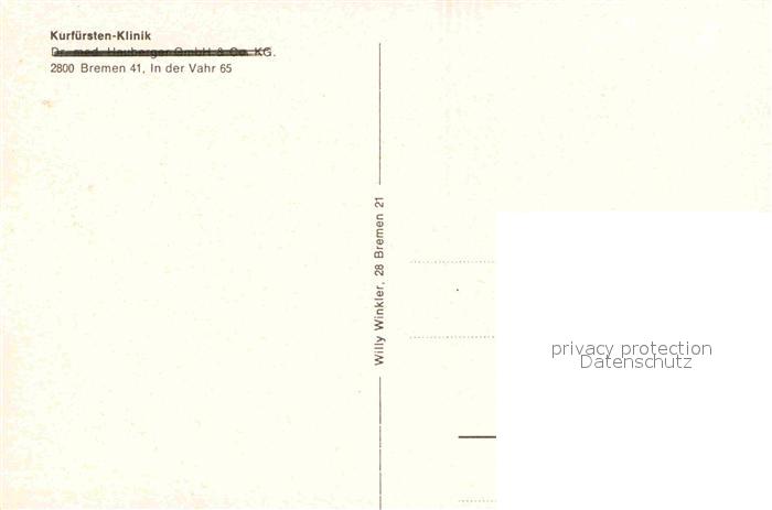 72682392 BREMEN CITY Kurfuersten Klinik postalisch nicht gelaufen Erhaltung siehe scans [FriedD77] KatCode: 11110004011000