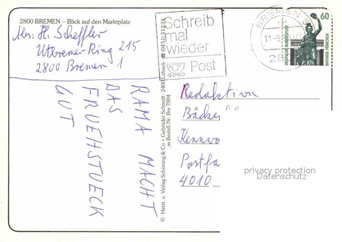 72828666 alte Postkarte BREMEN CITY Marktplatz postalisch gelaufen Erhaltung siehe scans [NatalD47] KatCode: 11110004011000