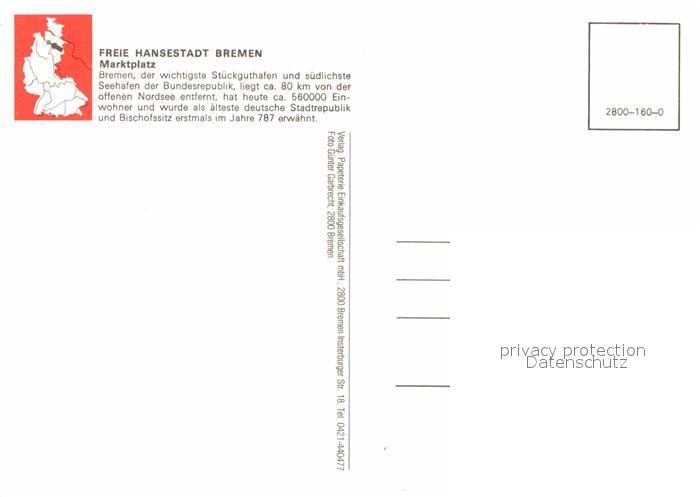 72725069 BREMEN CITY Marktplatz postalisch nicht gelaufen Erhaltung siehe scans [WerneD78] KatCode: 11110004011000
