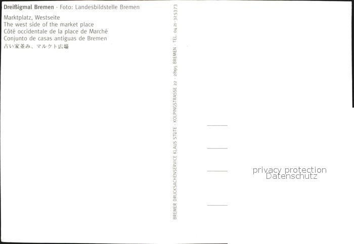 72413106 BREMEN CITY Marktplatz postalisch nicht gelaufen Erhaltung siehe scans KatCode: 11110004011000